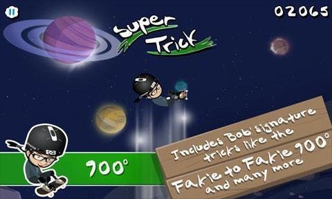该游戏是滑板跑酷游戏,通过一个个高台和弯道抑或是一条长直的平台,体验一次极速快感,游戏的操作也比较简单,手指滑动屏幕带动人物滑行~你可以随意控制鲍勃同学做出你想要的创意动作哦~